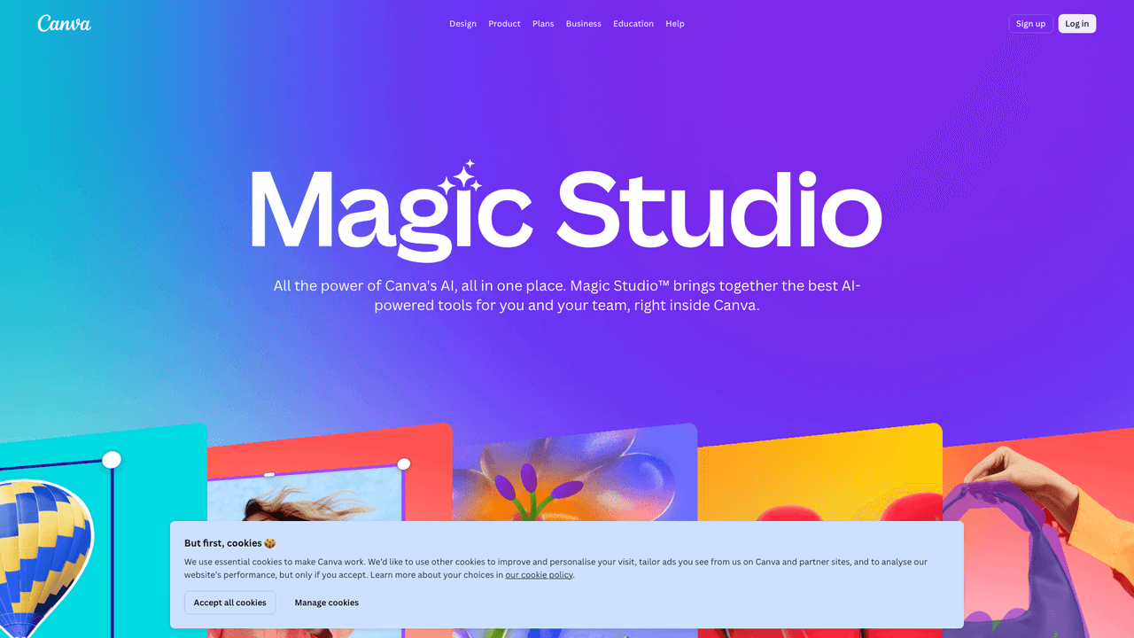 Canva Magic Studio integrates artificial intelligence into Canva’s design ecosystem to make graphic creation easier. The platform includes features such as AI-generated images, automatic layout suggestions, and text generation tools.