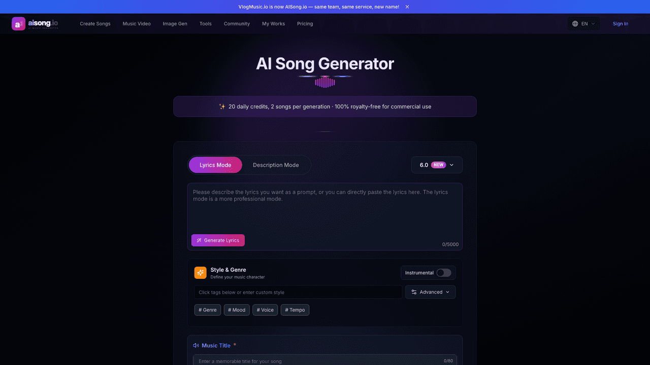 Because of its clean interface and straightforward workflow, AIsong is particularly attractive for people who want to experiment with AI-generated music but have little experience with traditional music tools.